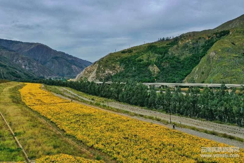 為更好展示東川區(qū)生態(tài)環(huán)境綜合治理成果,結(jié)合“市級(jí)美麗鄉(xiāng)村示范村”這張名片,湯丹鎮(zhèn)規(guī)劃設(shè)計(jì)利用已閉庫的小江尾礦庫,按照尾礦庫種草復(fù)綠的要求,投資264萬元,種植約500畝花卉。其中,壩內(nèi)約265畝種植藍(lán)色、黃色、紅色、粉色、玫紅色、橙色、白色7種顏色11類花卉,壩外約235畝種植紫花苜蓿。