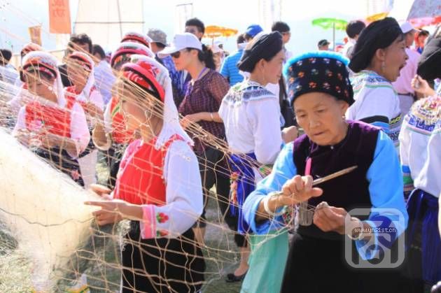 在耍海的日子里,人們只起嗩吶,唱著《大本曲》,對(duì)著調(diào)子,舞著霸王鞭,跳起仙鶴舞,盡情歡樂(lè)。同時(shí),舉行一年一度的“賽龍舟”活動(dòng),龍舟一般用洱海里大型的木船改裝而成,在長(zhǎng)約十米,寬約三米的風(fēng)帆上,披紅掛綠、張燈結(jié)彩。桅桿上扎有五顏六色的“連升三級(jí)”的大斗,并拴上銅鑼,尾舵上豎有松枝,船舷上畫(huà)著叱咤風(fēng)云的“黃龍”和“黑龍”,中間鑲嵌一面圓“寶鏡”。隨著一聲號(hào)令,各村寨的龍舟競(jìng)發(fā),人們唱著賽舟調(diào),祝愿風(fēng)調(diào)雨順,五谷豐登。