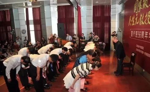 當(dāng)日上午9時(shí)許,出席“名中醫(yī)吳生元教授經(jīng)驗(yàn)傳承暨行醫(yī)56周年學(xué)術(shù)研討會(huì)”的眾多嘉賓,共同見證了中醫(yī)傳統(tǒng)拜師儀式。