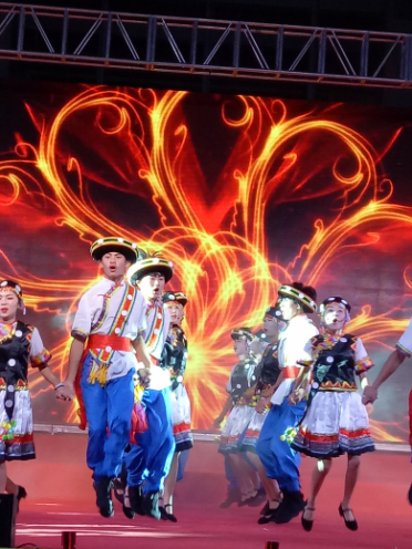 11月16日晚上舉辦的“吹吹腔民族文化藝術(shù)團(tuán)成立匯報(bào)文藝演出”,表演了白族舞蹈《力格歌》、《山花爛漫》、《滄江月》、《彝山春》、《瓜七七》、《麻雀調(diào)》等各民族歌舞12個(gè)節(jié)目,楊嘉田的一首獨(dú)唱白族民歌《妹是線來哥是針》,把晚會(huì)推向了高潮,就連縣委書記段冬梅,副書記、縣長李郁華也同來賓、群眾一道為演出喝彩、為精彩節(jié)目歡呼、吶喊;篝火晚會(huì)把云龍縣各族人民群眾和參加同慶的來賓再次凝聚在一起,場面熱鬧非凡,山塔上燃放的七彩煙花更是引人注目。