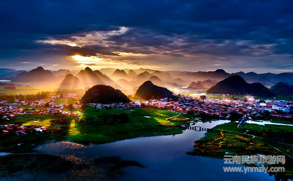 普者黑,這是一副天造的山水藝術(shù)杰作,更是一幅自然潑墨而成的朦朧詩情畫。正所謂“山得水而活,水得山而媚”的福地。