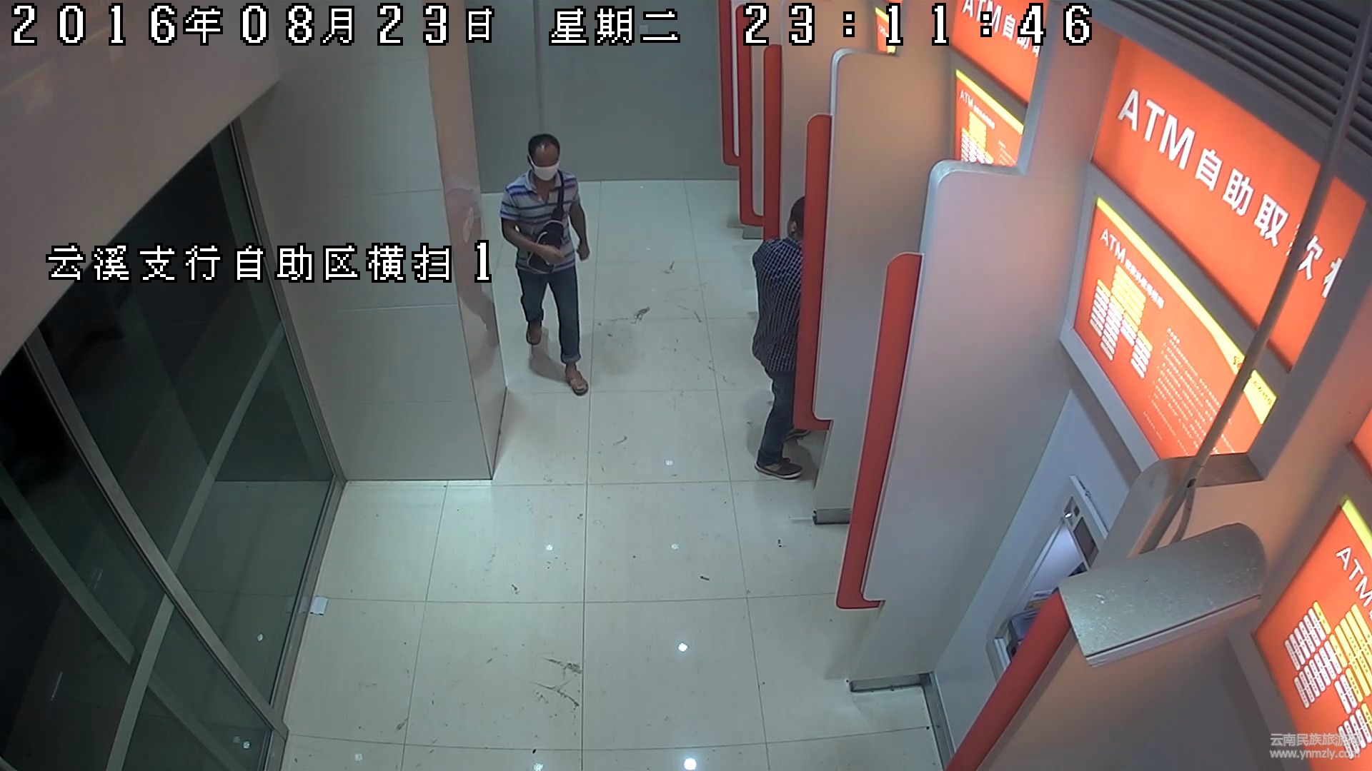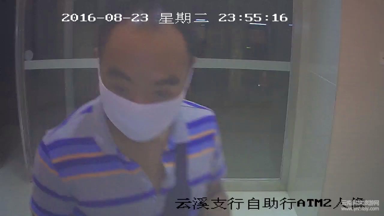 在官渡區(qū)小板橋中街農(nóng)村信用社云溪支行提供的視頻監(jiān)控中,23日晚23點(diǎn)52分,一輛拉客的電單車來到自助銀行門口。在付了電動(dòng)車車費(fèi)后,一個(gè)上身穿條紋上衣、下身穿牛仔褲的男子四顧無人后,從口袋里掏出一個(gè)白口罩戴上,之后迅速走到自助銀行里,在柜員機(jī)上取走了一沓錢。間隔不久,零點(diǎn)已過,該男子再次回到柜員機(jī)上取錢。