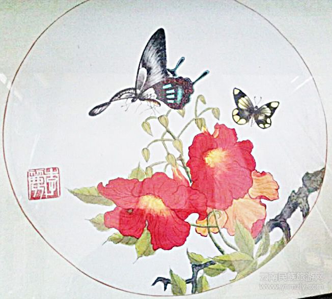 李麗通過各有特色的“蝴蝶東巴民族藝術畫”,在傾瀉胸中情懷,一吐豪氣。“蝴蝶東巴民族藝術畫”是提供她借以發(fā)揮的對象。因為字中有畫、畫中有字,正好具備了別的物象所不能替代的情感。人們可以在她的近作上感受到各種精神內(nèi)容,寄托豐富的情懷。無論是從造型的舒張之間、力美和節(jié)律的和諧;抑或是從造型變化、布局恰當; 還是從符號造型、概括字所具有的強健、敦厚、俊逸、神采于一體的特點,都似乎是上蒼賦予人世間的尤物。畫家在經(jīng)意和不經(jīng)意間的題材求取,都能出其性靈溝通。