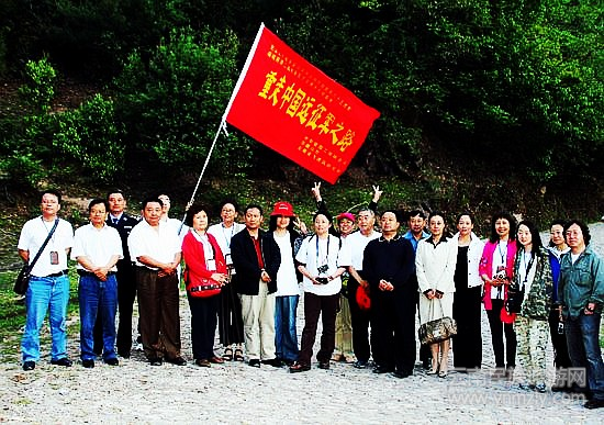 2010年5月20日,由遠(yuǎn)征軍總司令衛(wèi)立煌孫女參與的“重走中國遠(yuǎn)征軍之路”活動的海峽兩岸二戰(zhàn)老兵后代及新聞記者等一行21人走訪考察了滇緬公路漾濞段。上圖為漾濞縣領(lǐng)導(dǎo)與考察團成員在滇緬公路彈石路面上合影。攝影時間:2010年5月20日,攝影:秦青云。)