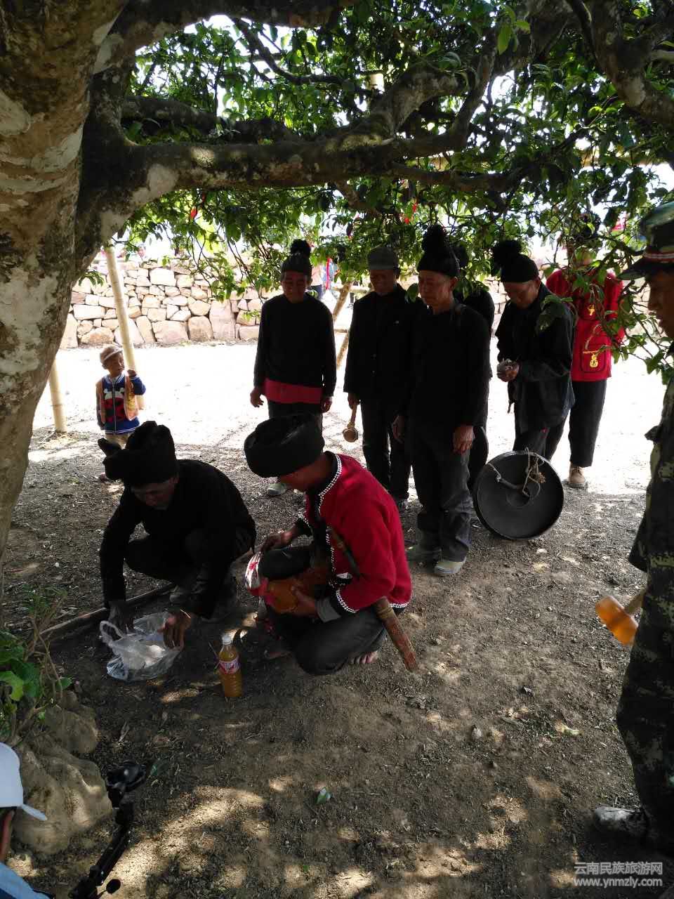 伴隨著悠揚的民族歌曲,越來越多的民族群眾聚攏在古茶樹周圍。下午兩點半,茶后采摘儀式正式開始。佤族村寨里有威望的老人,開始圍著古茶樹祭拜茶神。神秘的祭拜儀式,讓遠(yuǎn)道而來的客人感受到了佤族茶文化的魅力。