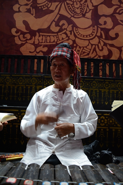 巖溫罕今年已經(jīng)74歲了,是古樂隊(duì)的核心人物,他彈奏的卡拉薩(鋼片琴),是傣族古樂中最重要的樂器之一。10多年前,他還是孟連縣文化館的館長,退休后,他醉心于古樂器,協(xié)助整理出了10多個當(dāng)年傣族王宮里最經(jīng)典的古樂舞節(jié)目。