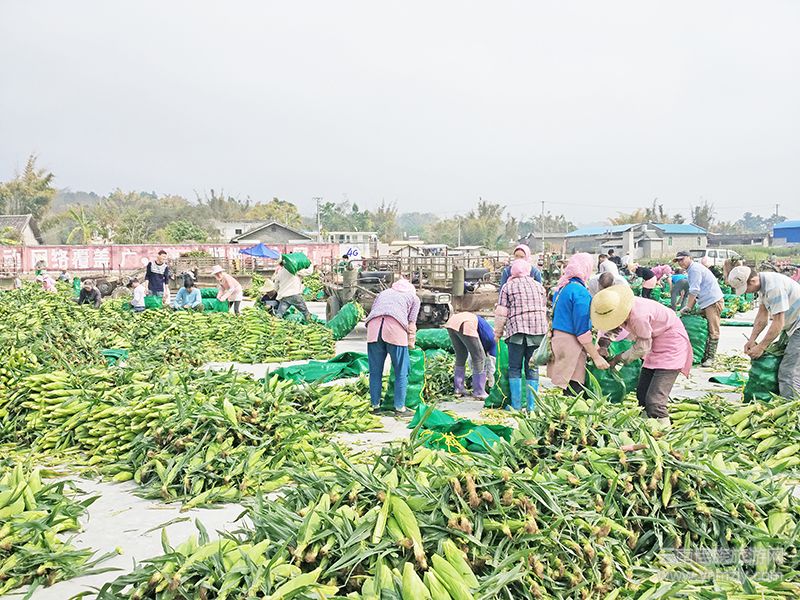 這是日前記者來(lái)到陽(yáng)光明媚的戶弄村委會(huì),在芒市宏聚農(nóng)業(yè)科技開(kāi)發(fā)有限公司大院內(nèi)看到的一組鏡頭。大院內(nèi),運(yùn)輸蔬菜的拖拉機(jī)來(lái)來(lái)往往,有的運(yùn)輸包谷,有的運(yùn)輸西葫蘆,有的運(yùn)輸西蘭花,一片繁忙。記者數(shù)了數(shù),僅運(yùn)輸甜脆包谷的拖拉機(jī)在場(chǎng)內(nèi)就有24輛,大家都像馮二喊夫婦一樣,滿臉的幸福。