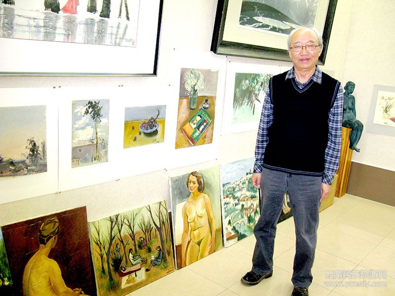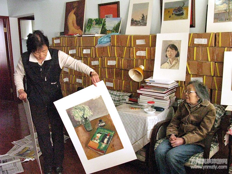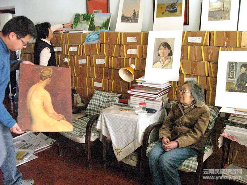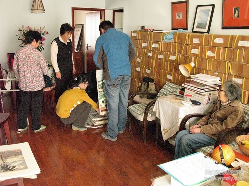 在昆明五一路118號(hào)(現(xiàn)云南畫院)忠翔先生工作室,觀看劉自鳴先生油畫作品。