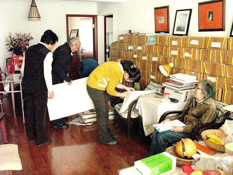 成敏老師(右二)受劉自鳴先生委托在清理作品。