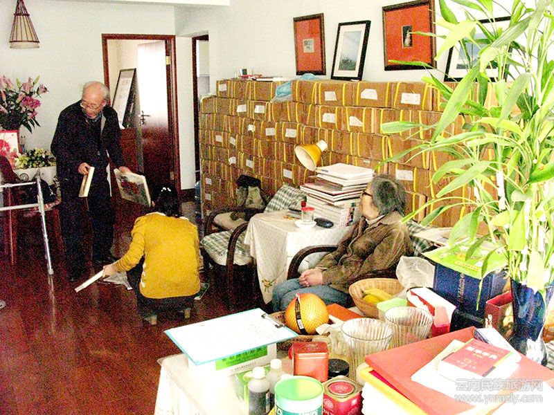 忠翔先生(左二)受劉自鳴先生委托在清理作品。