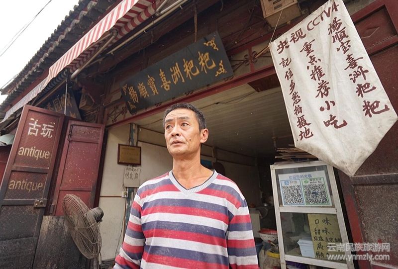 楊順寶在喜洲四方街邊賣喜洲粑粑已經五六年了,還上過中央四套“記住鄉(xiāng)愁”欄目。他說以前每天最少可以賣三百多個,每個賣十元,這樣已經下來,一年輕松賣一百多萬。