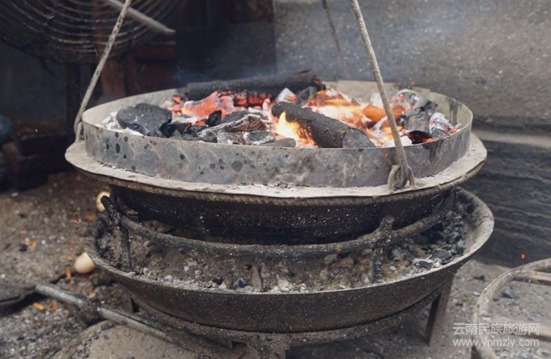 喜洲粑粑最獨特是雙面烘烤,上下都有炭火,把粑粑放在中間烤五分鐘。