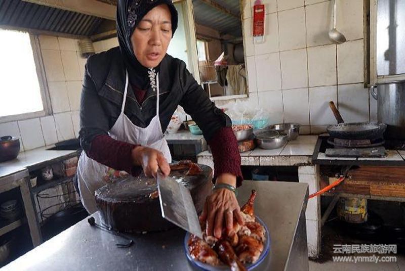 客棧的老板說,他們賣烤鴨已經(jīng)十幾年了,方法也是在內(nèi)地學(xué)的,他們的顧客主要是當(dāng)?shù)厝耍院芏嗄炅丝绝喌膬r(jià)格也沒有變化,雖然賣30元掙不了多少錢,但每天都可以賣光,不擠壓,也不會(huì)損耗,因?yàn)榭绝喿詈檬菬岢浴?dāng)天吃,剩下就不好吃,沒人要了。