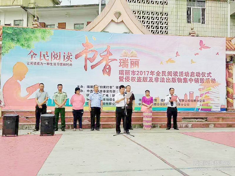 本報(bào)訊(記者 趙國(guó)云 通訊員 楊騰榮 唐圖丁)4月28日,瑞麗市舉行2017年全民閱讀活動(dòng)。瑞麗市委常委、宣傳部長(zhǎng)、市掃黃打非領(lǐng)導(dǎo)小組組長(zhǎng)棍么、市“掃黃打非”領(lǐng)導(dǎo)小組各成員單位領(lǐng)導(dǎo)和工作人員,部分相關(guān)企業(yè)負(fù)責(zé)人,部分學(xué)生代表以及社會(huì)各界人士參加了此次活動(dòng)。