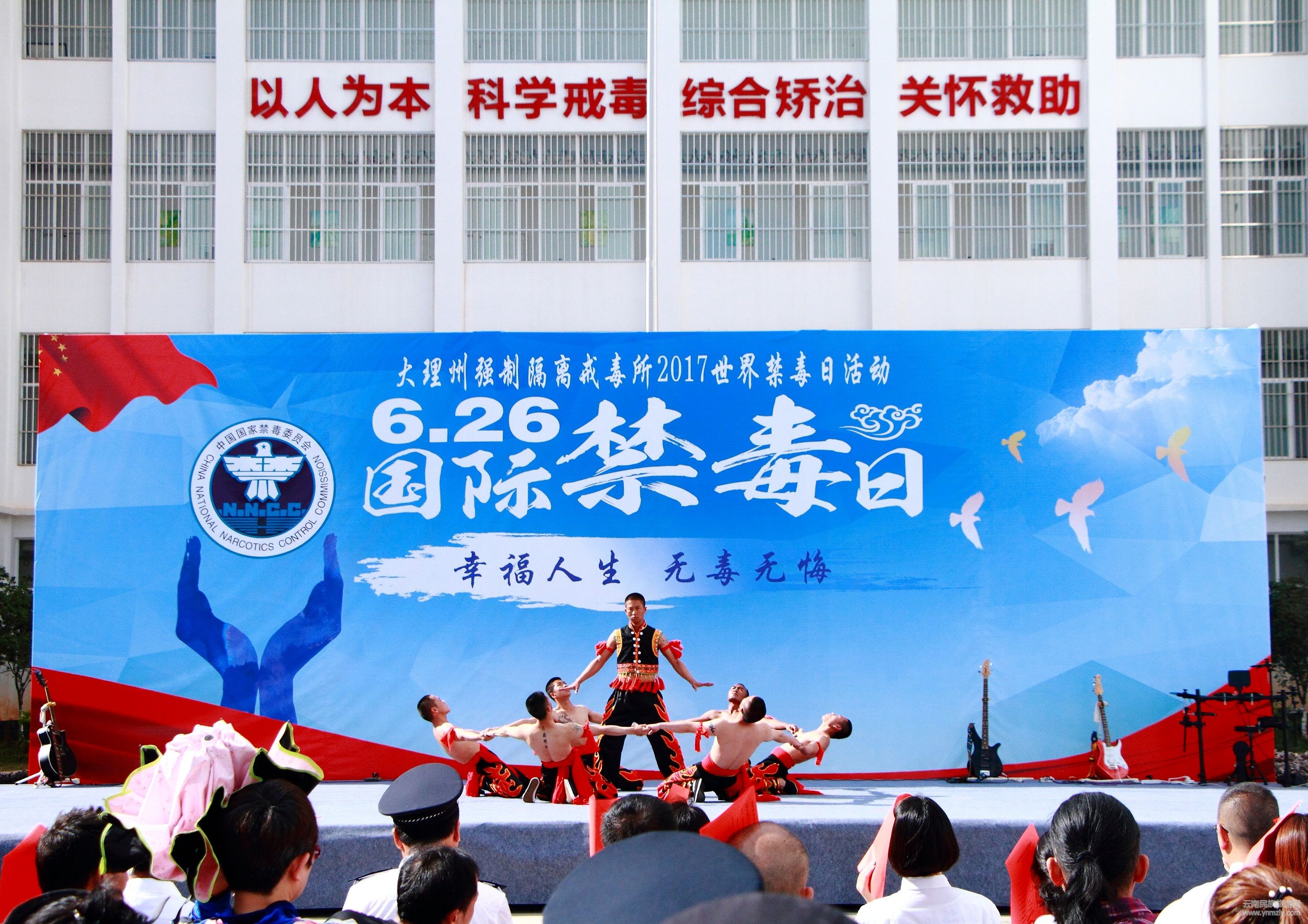 6月26日上午,在第30個(gè)國際禁毒日來臨之際,為進(jìn)一步強(qiáng)化毒品危害的內(nèi)外宣傳,推進(jìn)全民參與禁吸戒毒工作,大理州強(qiáng)制隔離戒毒所舉辦了以“幸福人生 無毒無悔”為主題的文藝匯演活動(dòng);大理州司法局、大理團(tuán)州委、大理州疾控中心等單位領(lǐng)導(dǎo)現(xiàn)場(chǎng)觀看了演出;大理州強(qiáng)制隔離戒毒所黨委書記、所長甘帆致辭。