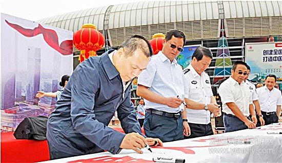 6月26日,在第30個(gè)“國際禁毒日”之際,云南省、昆明市禁毒委在新亞洲體育城中心廣場(chǎng)舉行“健康人生、綠色無毒--云南省暨昆明市‘6·26’國際禁毒日禁毒宣傳主題活動(dòng)”。省委常委、副省長、省委政法委書記、省禁毒委主任張?zhí)鱿顒?dòng)并講話。省禁毒委副主任、省委辦公廳副主任李國臣,省禁毒委副主任、省政府副秘書長陳建華出席活動(dòng),省禁毒委副主任、秘書長、省公安廳黨委委員、副廳長郭寶主持活動(dòng)。省公安廳黨委委員、昆明市副市長、市禁毒委主任、市公安局局長刀勇就昆明市深入推進(jìn)第四輪禁毒人民戰(zhàn)爭(zhēng)作發(fā)言。在昆高校大學(xué)生、中學(xué)生、公安民警、武警官兵、娛樂場(chǎng)所從業(yè)人員、禁毒志愿者、社區(qū)群眾代表共2500余人參加活動(dòng)。