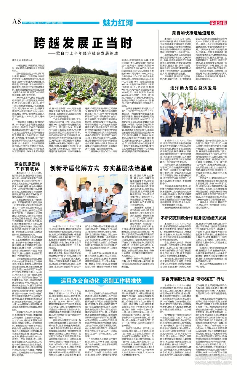 7月5日,紅河州委常委、蒙自市委書記龐俊率市委調(diào)研組調(diào)研政法工作時(shí)指出,政法工作要圍繞保安穩(wěn)、促發(fā)展工作目標(biāo),創(chuàng)新矛盾化解方式,加大基層社會(huì)矛盾調(diào)解力度,為蒙自二次跨越提供安全、穩(wěn)定、和諧社會(huì)環(huán)境,以優(yōu)異成績(jī)喜迎黨的十九大勝利召開。