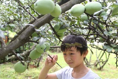 曇華寺公園內種植的酸木瓜,又稱貼梗海棠,栽種歷史已有30余年,數(shù)量超過500株。每年春季,花開滿園,紅霞煥彩;夏季,木瓜樹結出青色的果,油綠的木瓜葉間夾雜著嫩綠的小木瓜,迎向太陽的方向會隨著果實成熟漸漸浮起由黃至紅的色澤,待到木瓜變?yōu)榻瘘S色,散發(fā)出別樣的清香,木瓜就完全成熟可以采摘了。