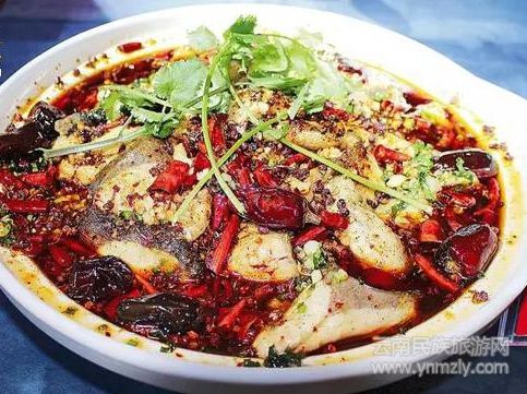 糊辣魚,曲靖人認(rèn)為是曲靖唯一自創(chuàng),不含任何外界制作手法和工藝的地道本地菜。糊辣魚起源于上世紀(jì)九十年代初,曲靖,自古便稱得上“魚米之鄉(xiāng)”、“衣食富足之鄉(xiāng)”,當(dāng)?shù)剞r(nóng)戶根據(jù)口味習(xí)慣,利用自產(chǎn)的、常見的辣椒用熗煮的方法,因為烹飪手法獨特,保留了魚中含有蛋白質(zhì),魚肉肌纖維較短,蛋白質(zhì)組織結(jié)構(gòu)松軟,水分含量多,肉質(zhì)鮮嫩。