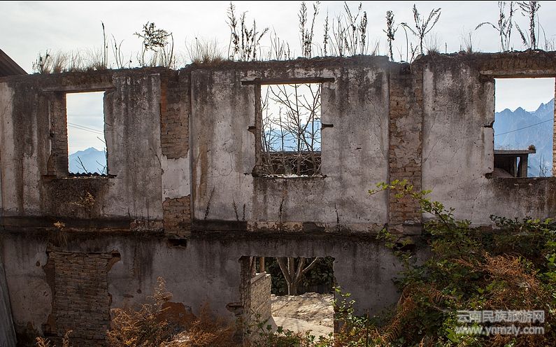 廢城中唯一的一條街道兩邊,還保留著文革前后的建筑,舊城建筑基本沒有拆除,被民族群眾繼續(xù)使用。空宿舍養(yǎng)了豬、舊辦公室養(yǎng)了雞、窗下有被遺棄的水磨石浴缸。少人來往的唯一街道上,溜達(dá)著一群碩壯的火雞……