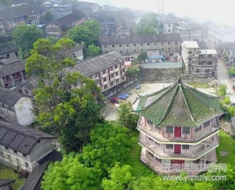 站在知子羅,第一眼看到的是那個(gè)八角樓,也稱“望江亭”。這里曾是原碧江縣圖書館,也曾是碧江縣最雄偉、最氣派、最有藝術(shù)風(fēng)格的建筑。