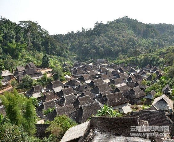 獨(dú)具布朗族建筑特點(diǎn)的橄欖式建筑,高低起落地掩映在蔥郁的芭蕉樹的影子里,古趣盎然。村內(nèi),有南門河、那耐河及許多流水潺潺的小箐穿村而過。