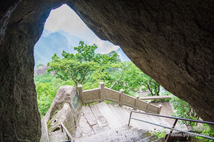 在這沒有成功的觀日出之后,就往前山方向走了,計劃是在中午的時候到山下,乘13:30的車去往宏村。路上經(jīng)過鰲魚峰(也是看日出的好地方),鰲魚洞以及百步云梯(劉曉慶當(dāng)年拍攝電影《小花》的取景點(diǎn))等景點(diǎn),一直到迎客松。