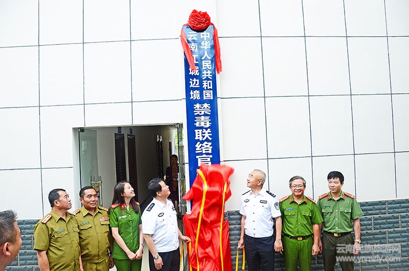 國(guó)家禁毒委員會(huì)副秘書(shū)長(zhǎng)、公安部禁毒局副局長(zhǎng)魏曉軍;云南省公安廳副廳長(zhǎng)郭寶;越南公安部毒品和犯罪問(wèn)題常務(wù)辦公室副主任黃英宣;老撾豐沙里省公安廳副廳長(zhǎng)斯翁謝·維利法;普洱市副市長(zhǎng)、市公安局局長(zhǎng)張堯貴;江城縣副縣長(zhǎng)、縣公安局局長(zhǎng)謝光德;以及省公安廳、版納、紅河、臨滄等地公安機(jī)關(guān)的相關(guān)部門(mén)和民警參加了揭牌儀式。