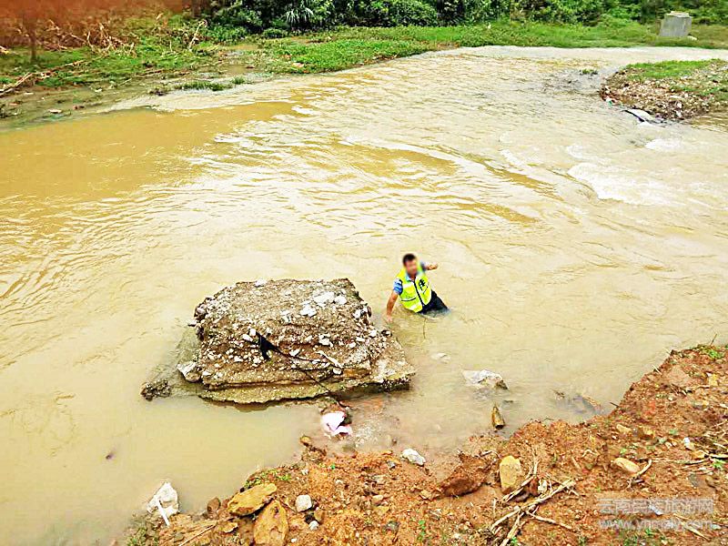 8月14日,一夜的暴雨后,廣南縣珠西二級路旁的河水暴漲,河里水流湍急,不停地沖刷著河堤、沙石、樹枝……