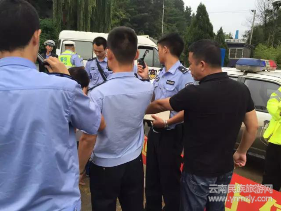 當(dāng)日17時30分,分局機關(guān)民警和新村、碧谷、阿旺派出所的警力,在太陽谷合力設(shè)卡攔截,成功將嫌疑車輛攔截,抓獲違法嫌疑人4名。
