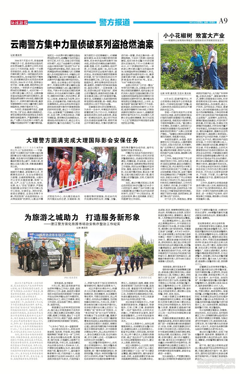 接下來,澄江縣公安局將全面深入整治旅游市場治安秩序突出問題,為澄江建設(shè)成為省內(nèi)一流、國內(nèi)領(lǐng)先、國際知名的國際化旅游會展城市保駕護航,打造澄江旅游服務(wù)新名片。