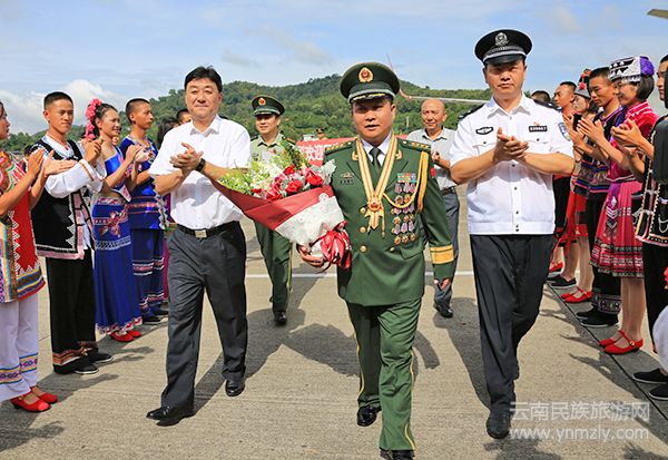 8月3日上午,“八一勛章”獲得者普洱市公安邊防支隊支隊長印春榮載譽而歸。普洱市委常委、市委政法委書記王軍和副市長、市公安局局長張堯貴代表普洱市委、市政府,與市公安局、市公安邊防支隊民警官兵以及普洱各族群眾代表一起,在機場熱情迎接。