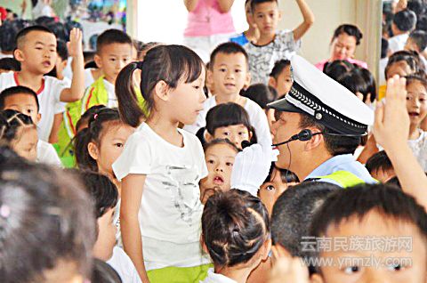 隨后,宣傳民警向?qū)W生發(fā)放了各種卡通動(dòng)漫式的道路交通標(biāo)志,現(xiàn)場(chǎng)演示了交通指揮手勢(shì),對(duì)各種標(biāo)志、指揮手勢(shì)所代表的含義進(jìn)行了逐一講解,通過(guò)問(wèn)答的方式加深學(xué)生的認(rèn)識(shí)。同時(shí)組織部分學(xué)生對(duì)于遇到交通信號(hào)燈時(shí)應(yīng)該怎樣過(guò)馬路、發(fā)生交通事故時(shí)應(yīng)該如何解決等進(jìn)行實(shí)景演練,對(duì)于存在的問(wèn)題進(jìn)行糾正。