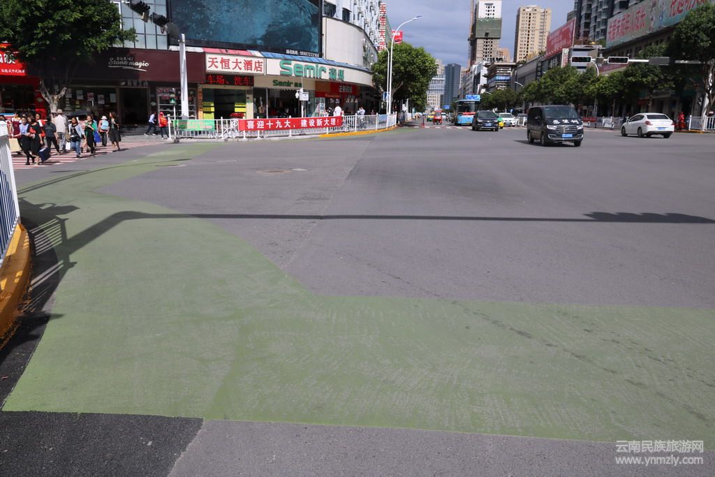 大理飯店路口,是城區(qū)主要路口之一,人流、車流聚集,機(jī)動(dòng)車、非機(jī)動(dòng)車混合通行,交通安全隱患較大。家住建行宿舍的李師傅,出于安全考慮,每次騎電動(dòng)車出行,總是沿建設(shè)路,繞行至人民路,中途掉頭,再通過路口,自從路口劃設(shè)綠色非機(jī)動(dòng)車專用車通道后,李師傅顧慮沒有了。