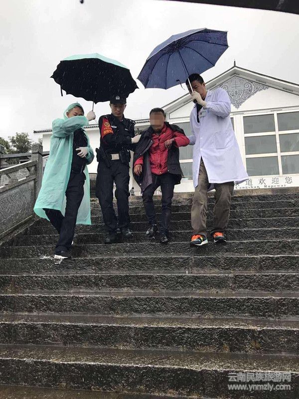由于天氣條件惡劣,大雨滂沱,給救援工作帶來了極大的困難,救援人員雖帶有雨具,但在風(fēng)雨泥濘中步履蹣跚、渾身濕透,經(jīng)過艱辛跋涉,于當(dāng)日13時許終于找到了被困者。醫(yī)務(wù)人員及時對其進(jìn)行初步檢查和傷口處理,民警為其披上警用多功能外套,稍事休整后民警與醫(yī)務(wù)人員一路攙扶著被困者行走到索道站點,一同乘坐索道下山,將被困者送往醫(yī)院接受治療。通訊員 王彥 (文章來源環(huán)球游報)