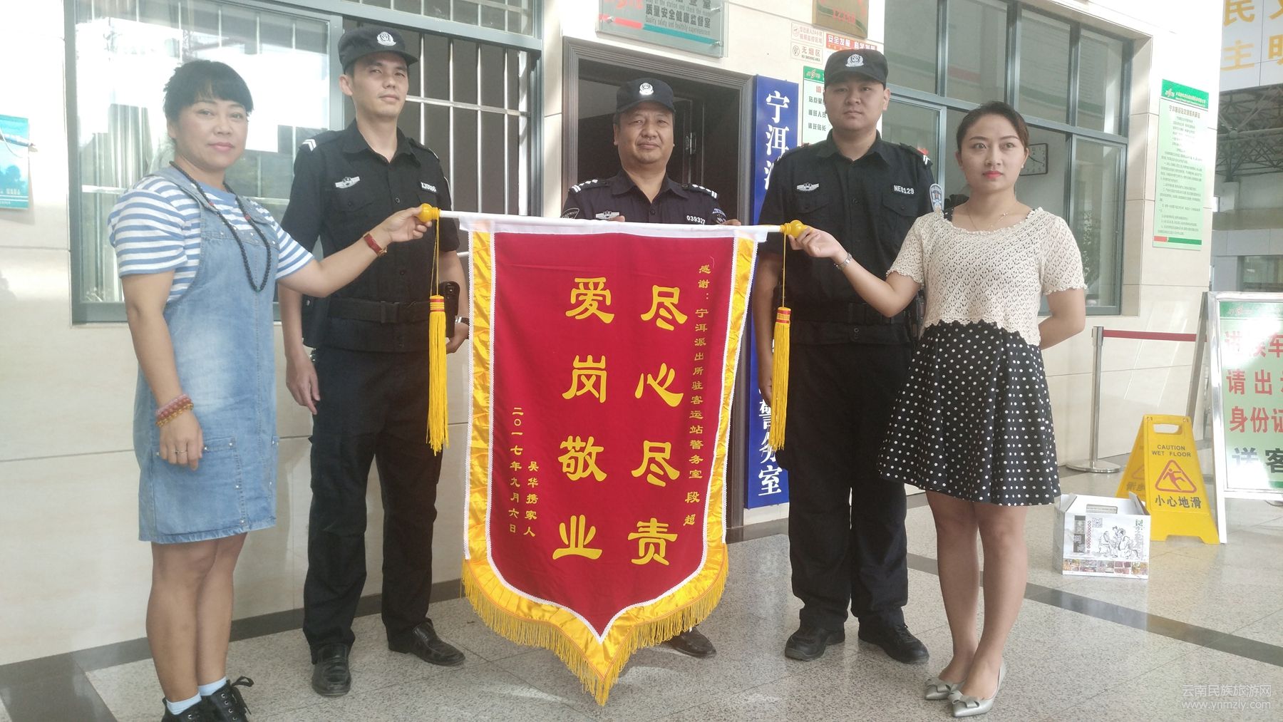 9月28日,尚女士與同伴一起走進寧洱汽車客運站警務(wù)室,將一面繡著“盡心盡責 愛崗敬業(yè)”的錦旗送給警務(wù)室民警協(xié)警手中,對警務(wù)室協(xié)警段超給予的幫助表示衷心的感謝。