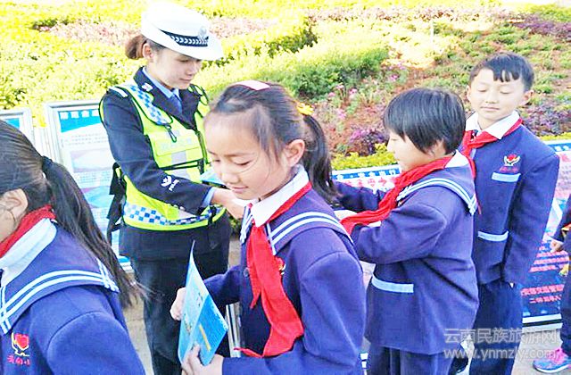 雙柏縣城東和大道與雙柏一中、妥甸小學交岔路口由于人員集中、道路狹窄、擁擠,加之車流量大,每天學生上學、放學高峰時段人來人往,車輛來回穿梭,安全隱患極大。針對這一情況,雙柏縣公安局交警大隊及時組織民警在縣城學校各主要路口設立流動“護學崗”,根據(jù)學生上學、放學時段及早晚高峰沿線各路口分別派出民警前往執(zhí)勤,維護交通秩序,在學校門口和重點路段部署警力,全力保障交通安全暢通。民警根據(jù)學校分布位置、上下學時間段以及車流等實際情況,實行定崗定責,科學調(diào)整勤務、部署警力,采取流動方式設立“護學崗”,確保師生出行安全。同時,民警走進校園開展交通安全普法宣傳,與師生互動交流,讓流動“護學崗”深入人心,在校園開花。