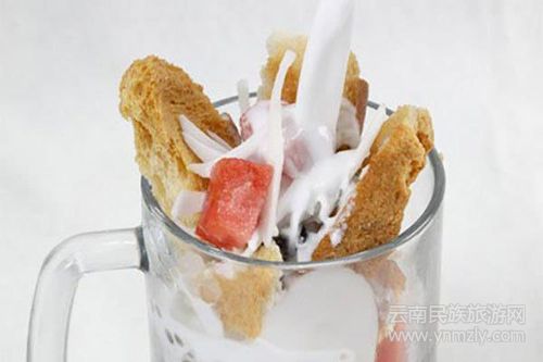 泡魯達其實是一種飲品,用西米、煉乳、特制奶油面包干、新鮮椰絲加上碎冰塊制作而成,奶油面包干,泡在奶香濃郁的冰水中,入口即軟,味道超贊。