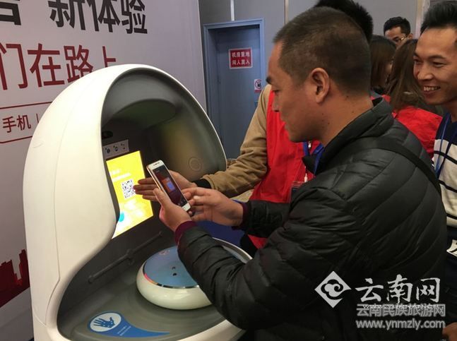 在九機(jī)網(wǎng)展臺前,多人排隊體驗一臺亞健康狀態(tài)檢測機(jī)。該設(shè)備基于電磁理療、面部識別技術(shù),根據(jù)人臉和手部穴位等狀況,來檢測個人亞健康狀態(tài)。“這是九機(jī)網(wǎng)開發(fā)的一個互聯(lián)網(wǎng)產(chǎn)品,跟微信公眾號打通,用戶完成檢測后,通過掃二維碼,就可以接收到一份健康報告。”九機(jī)網(wǎng)CEO陳鴻睿介紹,這個東西主要是好玩,準(zhǔn)確率達(dá)到80%,可以做一些參考。