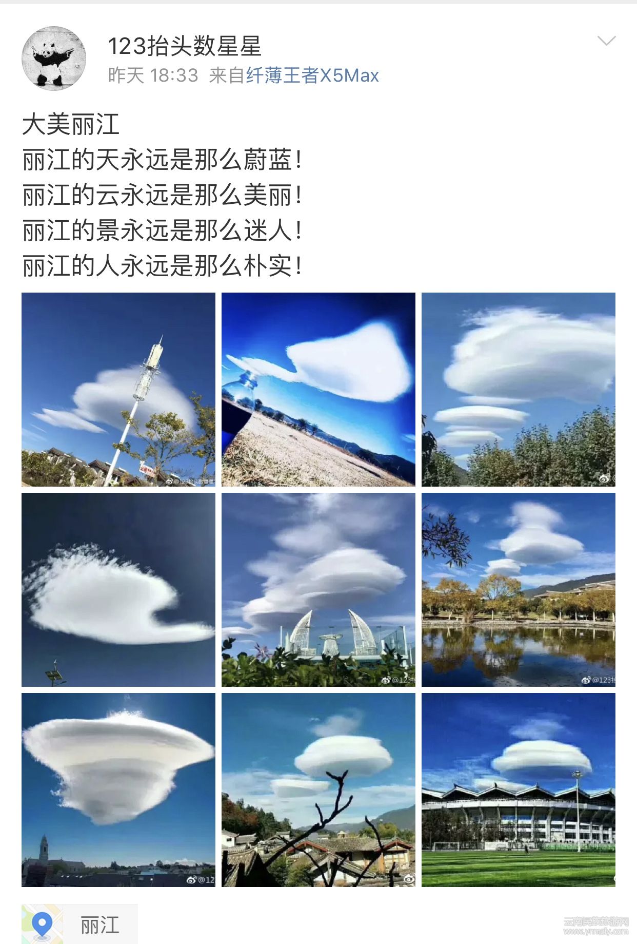 這幾天的麗江被這朵云刷屏了。