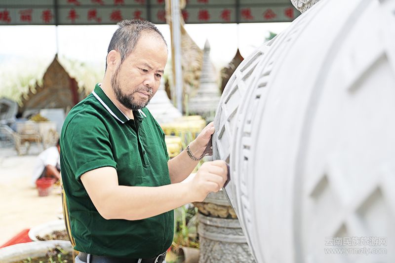自完成姐告國門裝飾以后,張國榮在瑞麗的名聲大震。隨著人們日漸重視民族文化,張國榮接到的工程也越來越多,但他并沒有因為生意做大了而當甩手掌柜,他還是親力親為。他還是改不掉反復推敲和修改的“毛病”,用工匠精神精雕細琢、精益求精。因為他希望每一件作品都是最好的。正是憑著這么一股子工匠精神,他很快得到了各界認可。