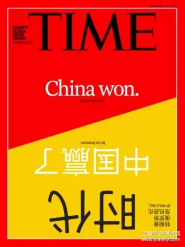 美國《時代》周刊亞洲版11月刊的封面,以中國國旗顏色為底,用中英雙語書寫“中國贏了”,這是《時代》周刊封面第一次出現(xiàn)兩種語言。