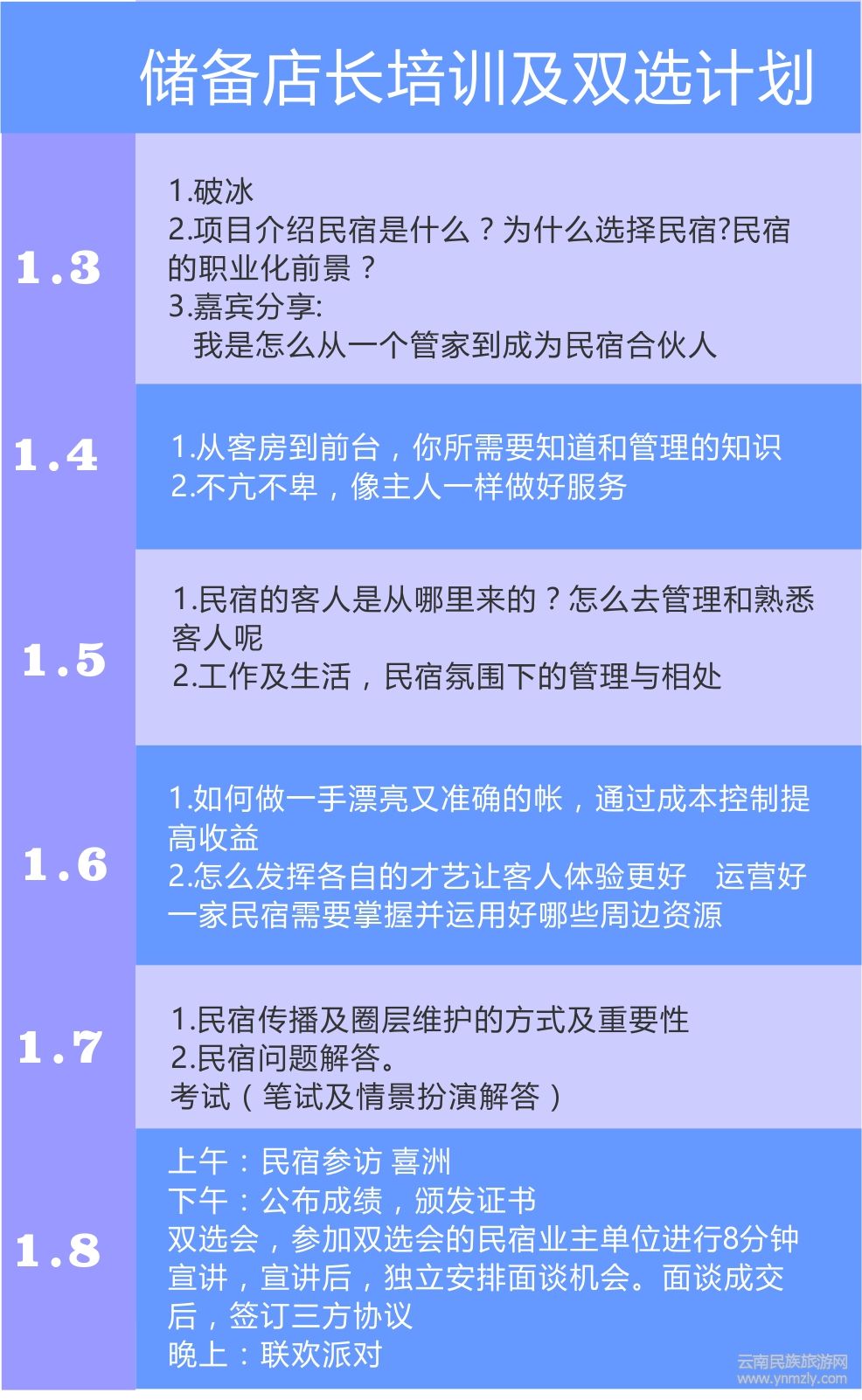 町隱民宿學院1月儲備店長培訓項目,于2018年1月3日至7日在町隱民宿學院(大理)舉行、高校畢業(yè)生,民宿初學者,客棧管家均可參與。