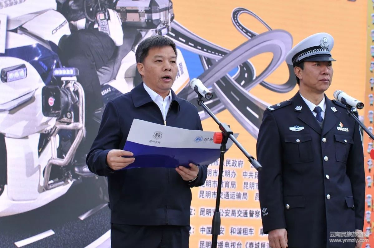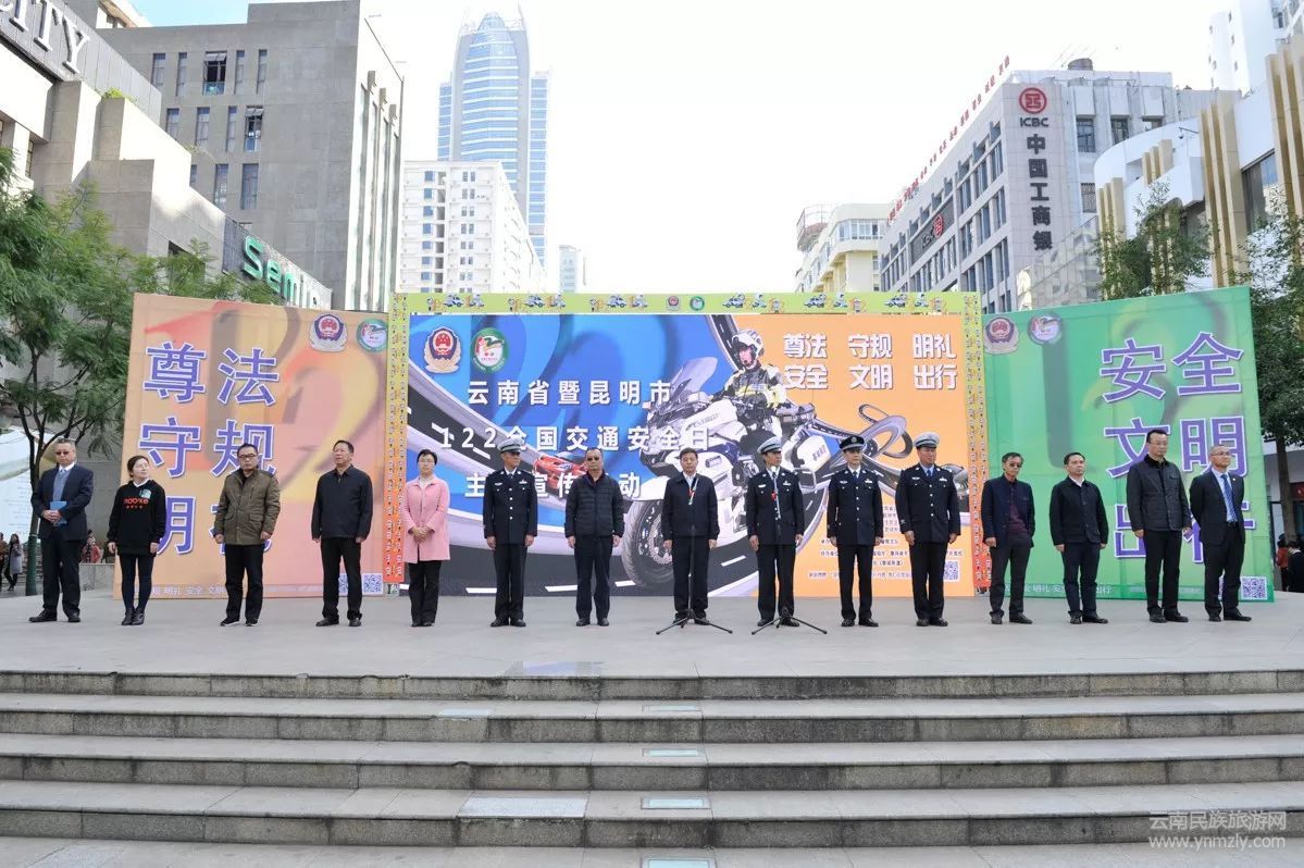 當天上午,由昆明市人民政府、云南省公安廳交通警察總隊、昆明市文明辦、中共昆明市委網信辦、昆明市公安局、昆明市教育局、昆明市司法局、昆明市交通運輸局、昆明市安全生產監(jiān)督管理局共同主辦的“云南省暨昆明市122全國交通安全日主題活動”啟動儀式在昆明市南屏步行街廣場舉行。云南省公安廳黨委委員、昆明市副市長、市公安局局長周建忠,云南省公安廳交警總隊政委徐志勇等領導以及各界代表和媒體記者近300人參加了活動。