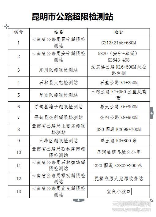 另附:昆明市公路超限檢測站表格