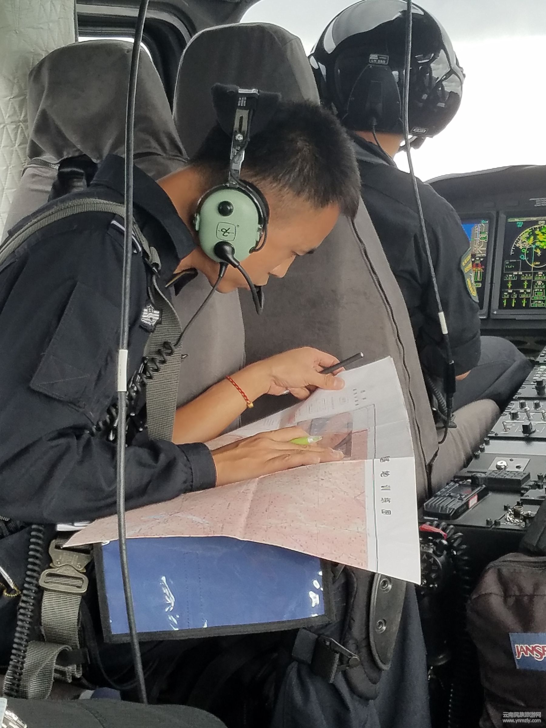 “立即做好返航準(zhǔn)備——”“朱團(tuán)長”一聲令下,機(jī)組人員迅速做好返回大理的準(zhǔn)備:在后艙負(fù)責(zé)導(dǎo)航的飛行員萬光磊迅速打開航圖,判斷直升機(jī)位置,分析返航線路。幸好,直升機(jī)上的一部手機(jī)還有信號,飛行員當(dāng)即與大理地面人員取得了聯(lián)系。