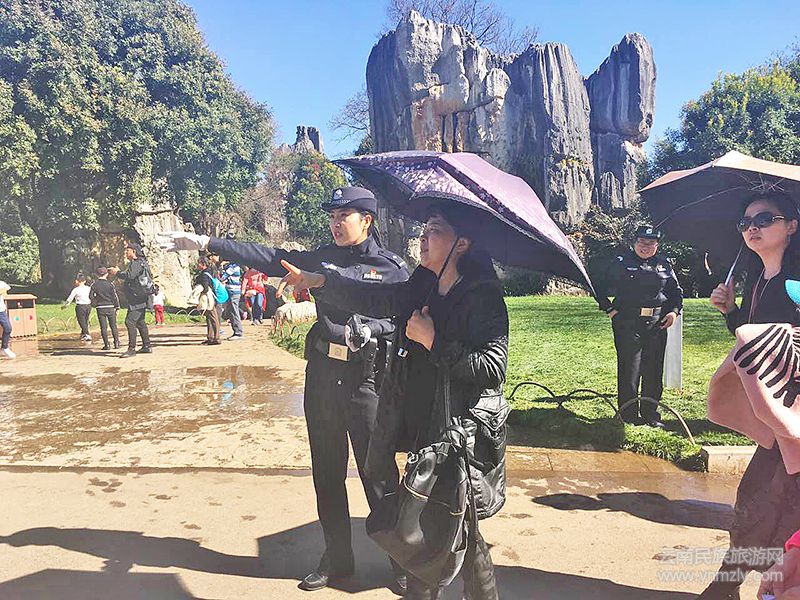 突出重點保全局,把石林景區(qū)作為重點,爭取各級支持對景區(qū)周邊道路交通、消防等部分基礎設施進行了修繕、改進。采取“冰凍療法”,對沿路招客攬客人員進行傳喚和教育訓誡,對違法營運黑車、“黑導”依法進行取締、打擊。配合旅游部門先后清理無證攤點125個,對景區(qū)導游、電瓶車和其他從業(yè)人員規(guī)范管理。將景區(qū)周邊村寨游動兜售商品的無業(yè)人員安排在景區(qū)從事綠化、保潔等工作,解決了無業(yè)游民隨意攔阻游客售賣商品影響景區(qū)形象,從源頭上防止“黑導”產生。強有力的綜合整治確保了景區(qū)內持續(xù)十年未發(fā)生刑事案件。