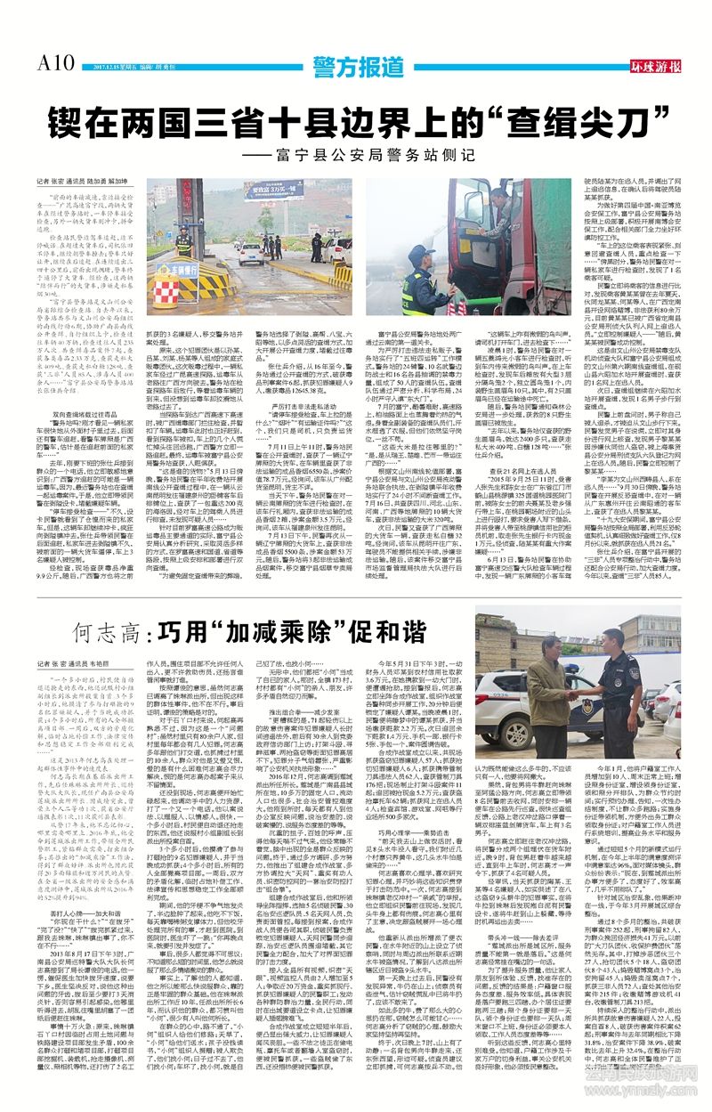 事實(shí)上,了解他的人都知道,他之所以能那么快說(shuō)服群眾,靠的正是牢固的群眾基礎(chǔ)。他在珠琳派出所工作近10年,任派出所所長(zhǎng)6年,而認(rèn)識(shí)他的群眾,都習(xí)慣叫他“小何”,很少有人叫他何所長(zhǎng)。