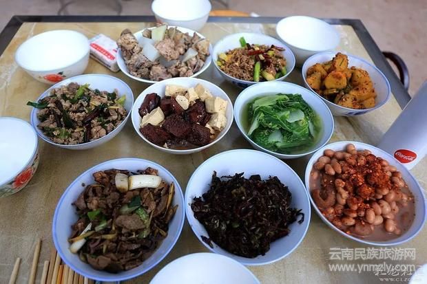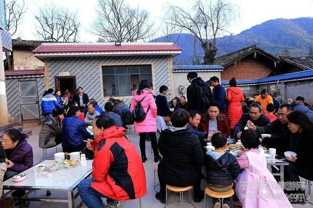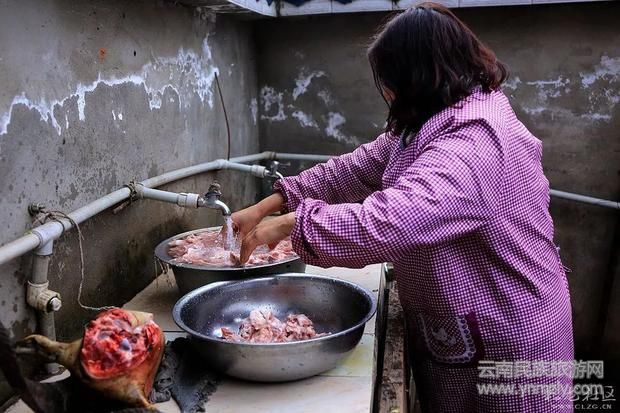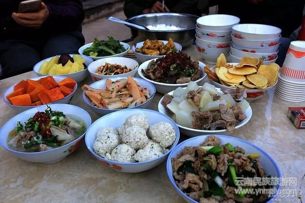 “殺豬飯”在云南很多地方都有,每到歲末臘月,各個(gè)縣區(qū)村村寨寨的群眾紛紛開(kāi)始張羅著選個(gè)好日子宰年豬,擺下豐盛的宴席,邀請(qǐng)親朋好友來(lái)到自家亮堂堂的農(nóng)家小院里,熱熱鬧鬧地吃上一頓豐盛的殺豬飯,渲染出辭舊迎新的年味。
