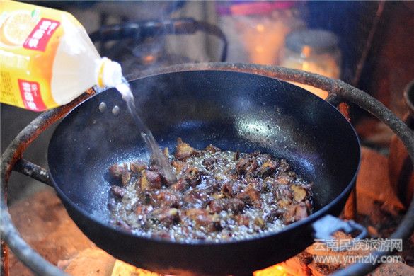 “以前家里很窮,買不起太多的酒,17歲那年,去幫人家干活的時(shí)候,第一次喝霞拉,那個(gè)味道至今都忘不了。”豐紹珍一邊介紹,一邊把砍好的雞塊倒進(jìn)炒好的油鍋中。